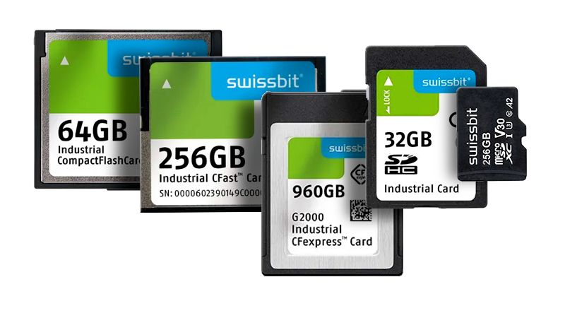 Swissbit-Speicherkarten vereinen Flexibilität, hohe Leistung und Robustheit. Das Kartengehäuse schützt die Flash-Komponenten zuverlässig und ermöglicht einen einfachen Austausch – ideal für Wartungs- und Aufrüstungsarbeiten. Die internen Speichermedien entsprechen den Swissbit-Anforderungen an Langlebigkeit und Zuverlässigkeit. Die Karten sind mit allen gängigen Schnittstellentechnologien von PATA bis PCIe erhältlich.