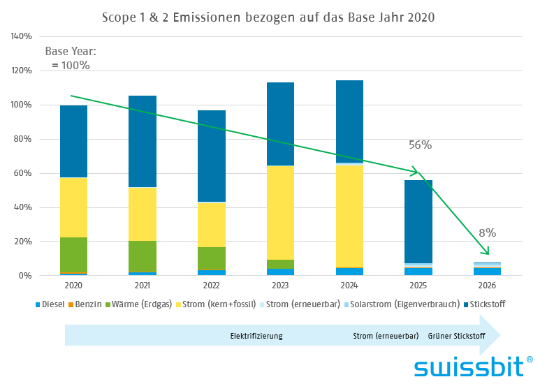 Swissbit’s commitment to climate protection is backed by measurable progress. Since 2020, the company has continuously reduced its Scope 1 and 2 emissions - those directly related to energy consumption and operations.