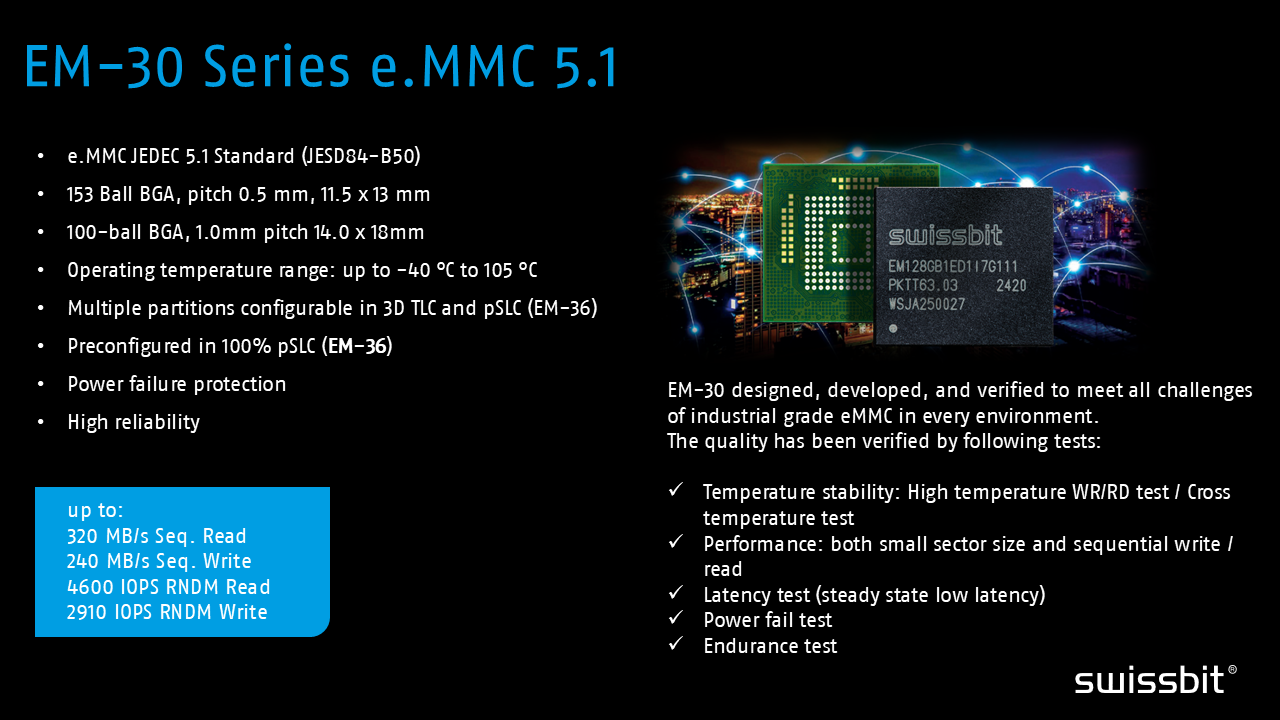 💡Learn more about the 3D NAND e.MMC Series EM-30 and SD cards.