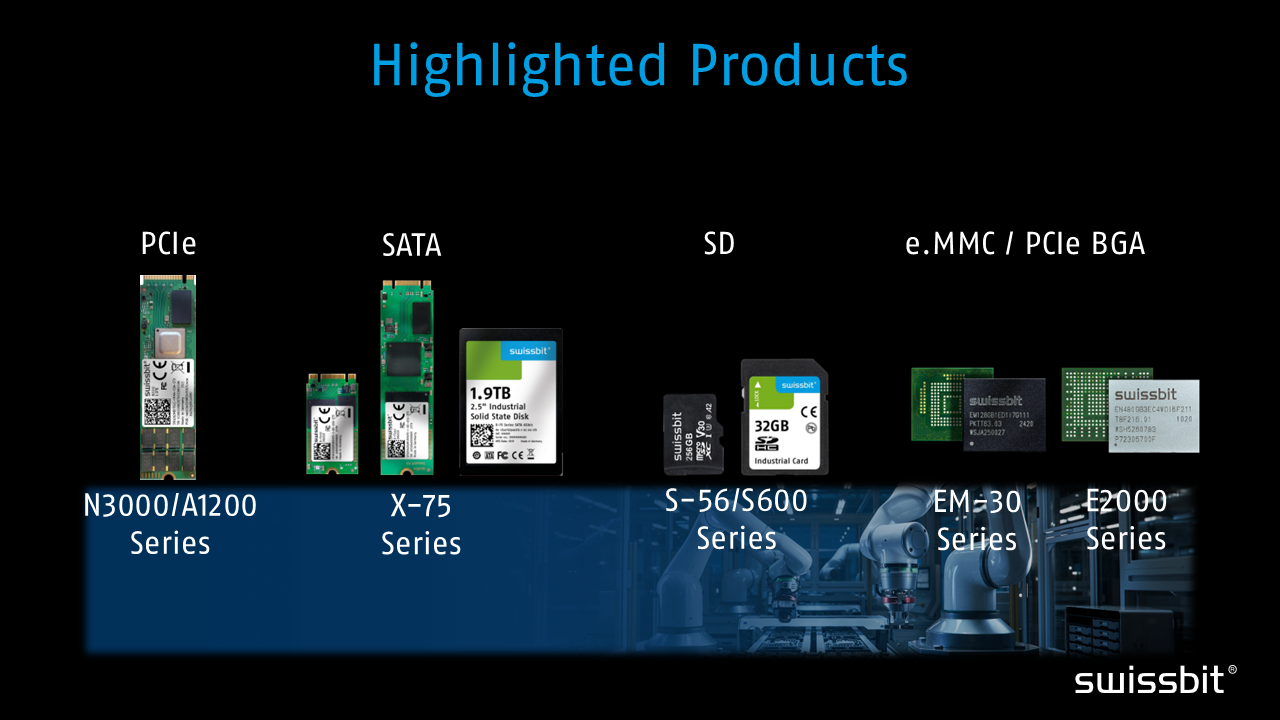 Driven by Industry 4.0, Swissbit ensures top-tier storage solutions tailored to industrial challenges, offering: