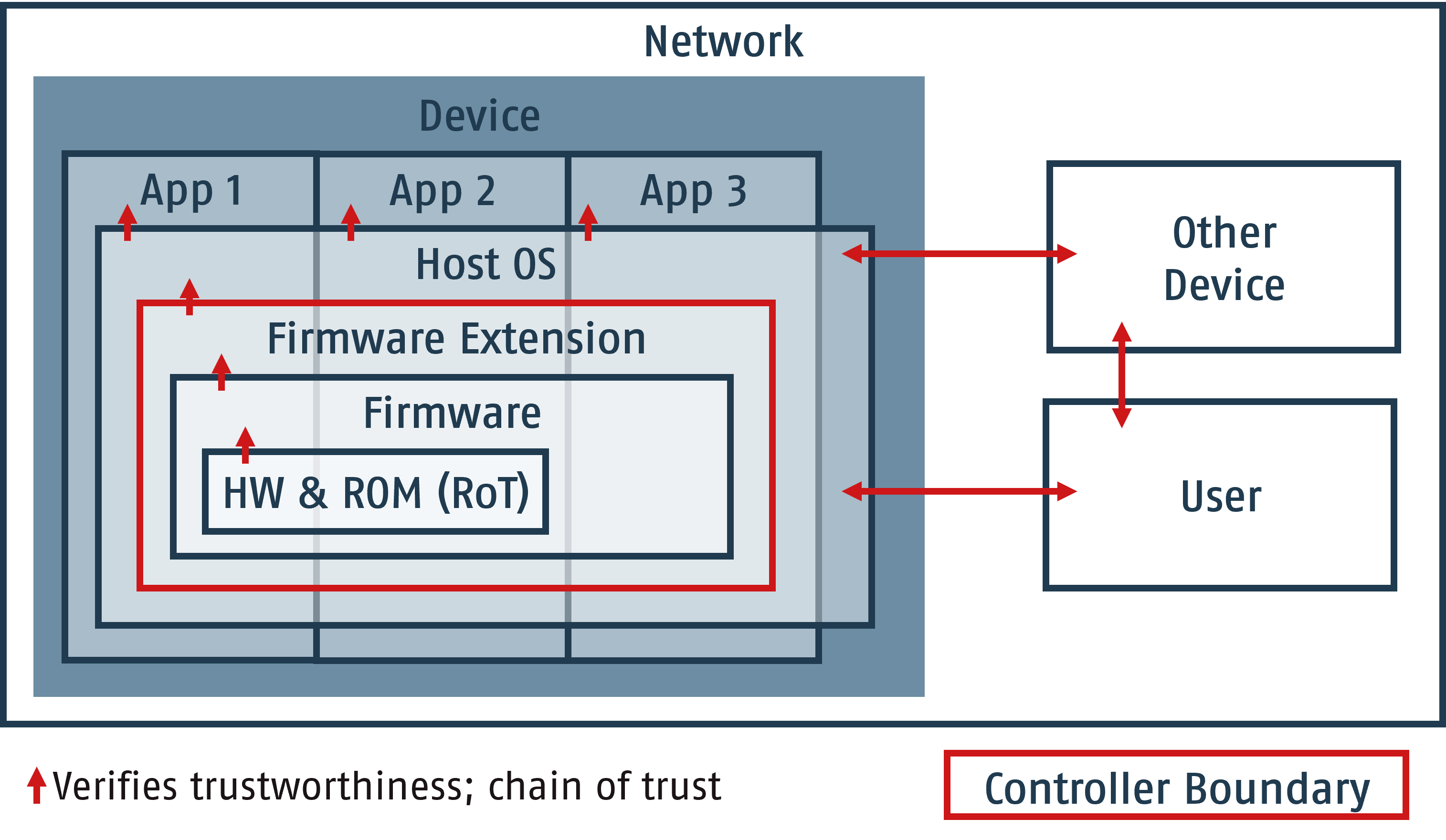 Figure 2: A Chain of Trust (CoT) verifies trustworthiness starting with a Root of Trust (RoT).