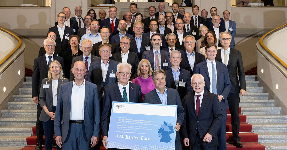 Company and state representatives of the IPCEI ME/CT together with Federal Minister for Economic Affairs and Climate Action Robert Habeck at the “Microelectronics: Key to Transformation” event on September 18 in Berlin.
