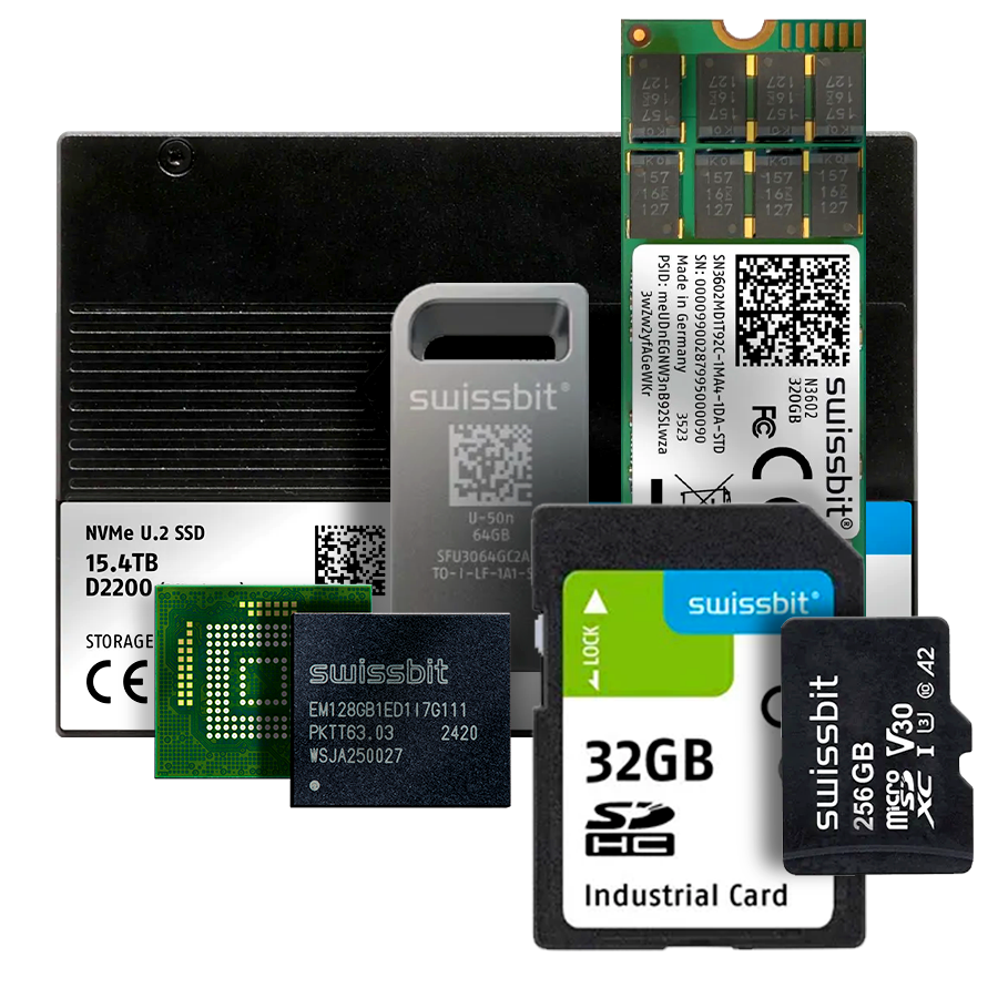 Swissbit has developed NAND flash and SSD solutions since 2001. Our engineering experience spans planar SLC through current 3D NAND generations, from USB drives through PCIe Gen 5 SSDs. We've designed storage for applications from -40°C industrial automation to +105°C automotive environments.